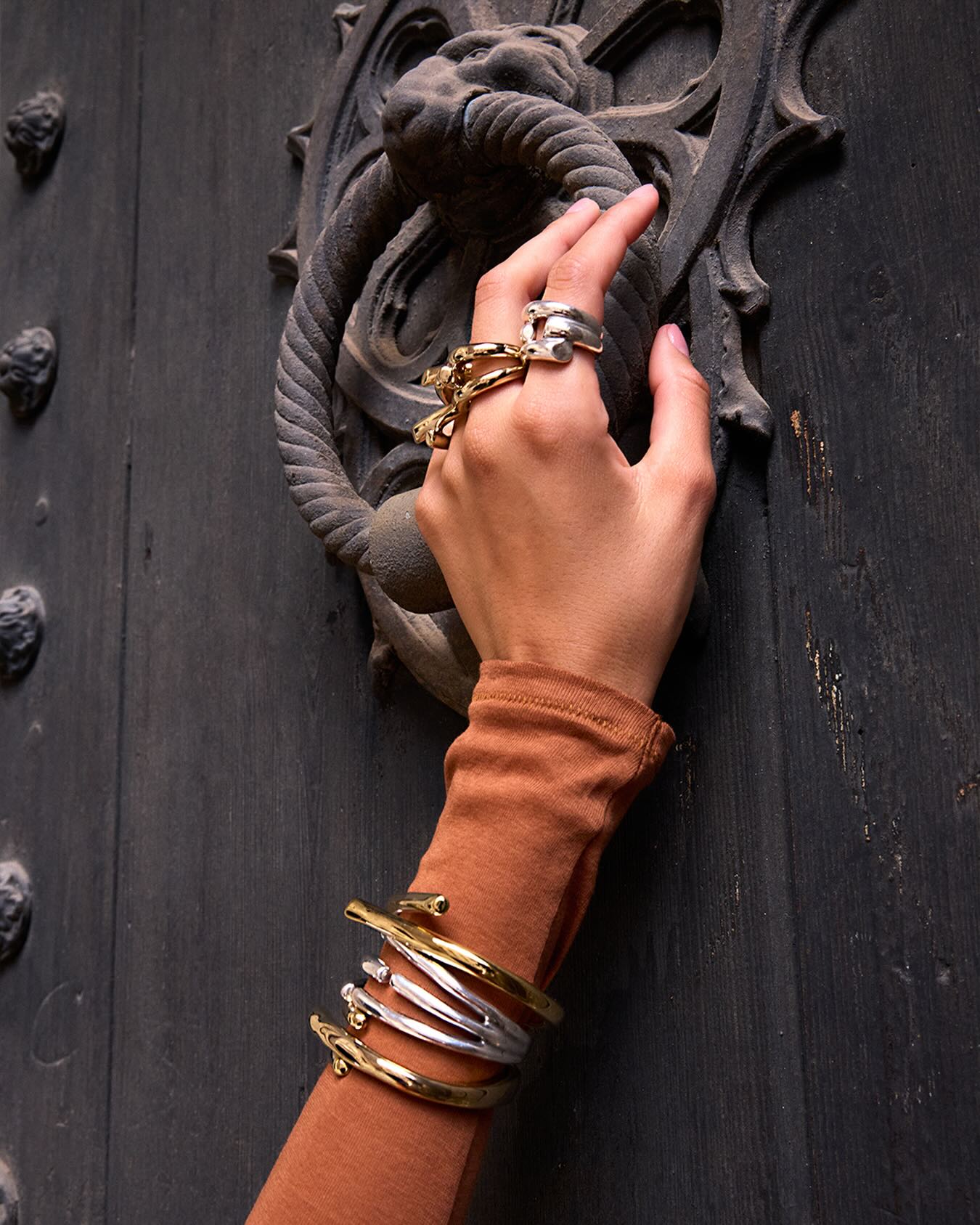 Започваме с бижутата от подколекция Raices, което в превод от испански означава „корени“. Вдъхновени от завръщането към себе си, с тези модели дизайнерите на UNOde50 ни водят на своебразно пътешествие в градския mix & match, в който водещ е минималистичният дизайн.