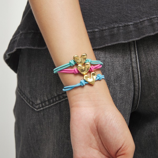 То може да е в сребристо или с 18К жълта позлата, да бъде върху къса или дълга верижка, естествена телешка кожа или разноцветни ластични каишки, които позволяват шарен mix & match с гривни през лятото.
